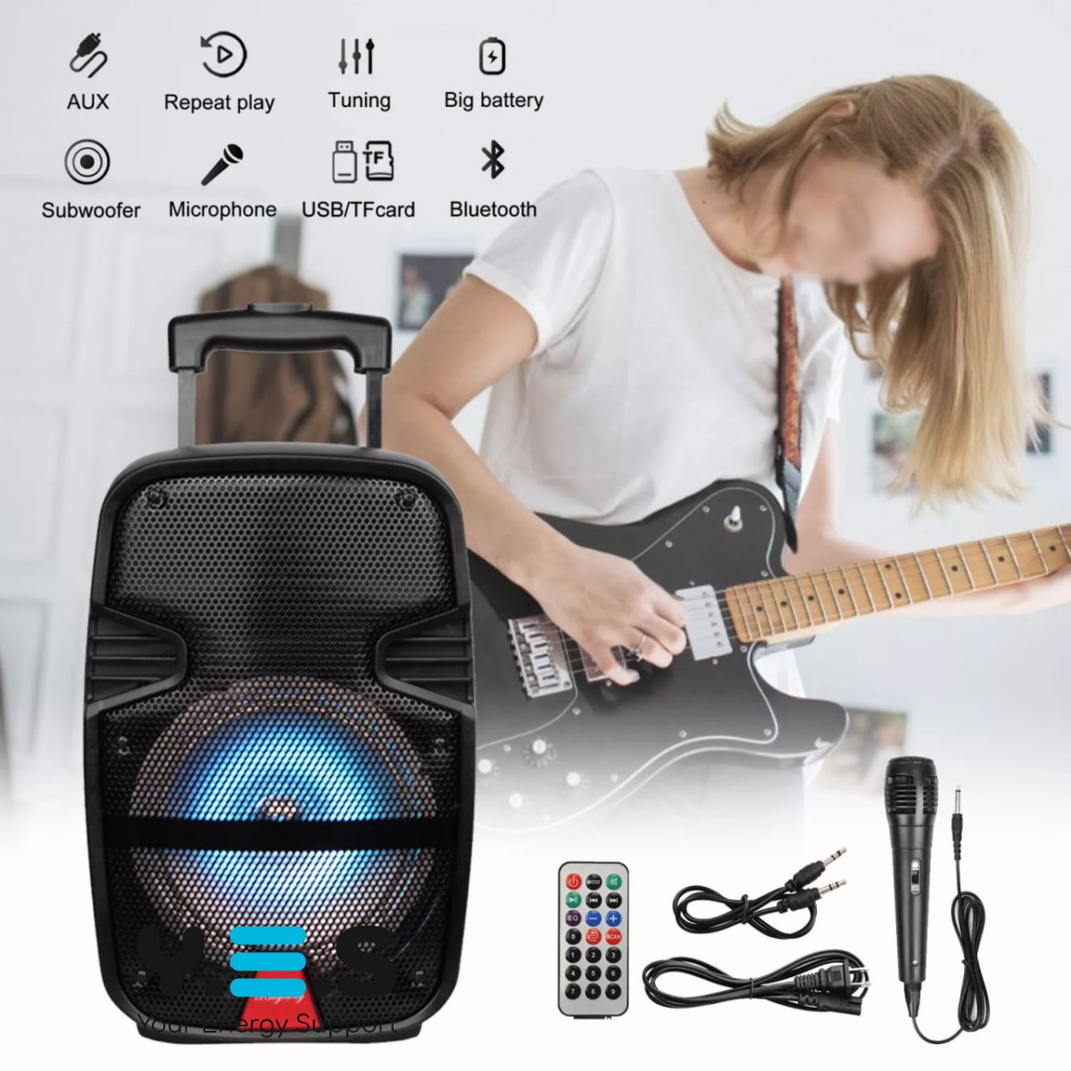 Бездротова Bluetooth-колонка 6,5" з підсвіткою та мікрофоном — практичне рішення для дому, відпочинку та невеликих подій. Завдяки функції караоке ви можете співати під улюблену музику, а підсвітка створює приємну атмосферу. Колонка розрахована на щоденне використання та поєднує простоту підключення з надійною роботою.