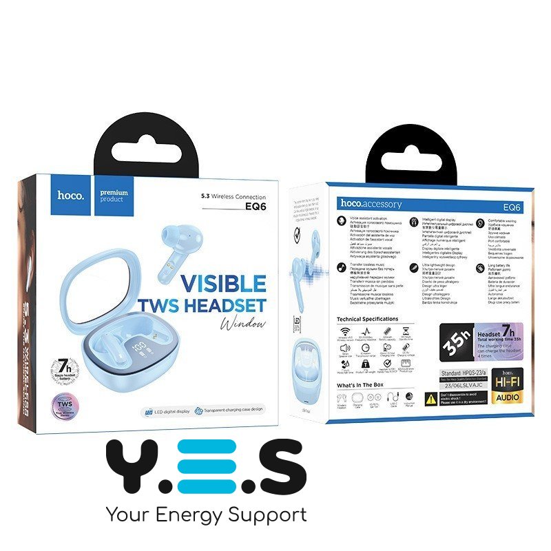 Навушники HOCO Shadow true wireless BT headset EQ6 мають стильний і сучасний зовнішній вигляд, завдяки компактним розмірам (62 x 53 x 28.5 мм) і легкій вазі (47 г). Ергономічна форма забезпечує комфортне носіння протягом усього дня. Прозорий кейс з інтегрованим цифровим дисплеєм для відображення заряду посилює їхню естетичну привабливість, роблячи їх не лише функціональними, а й модними аксесуарами.