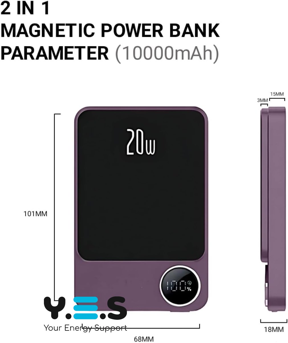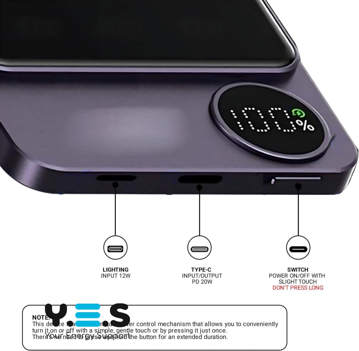 Бездротовий Power Bank MagSafe 20 000 mAh — зручний портативний зарядний пристрій для щоденного використання. Забезпечує бездротову зарядку з підтримкою MagSafe та має велику ємність 20 000 mAh, що допомагає довше залишатися на зв’язку. Практичний вибір для дому, роботи та подорожей — якісний і надійний аксесуар на кожен день.