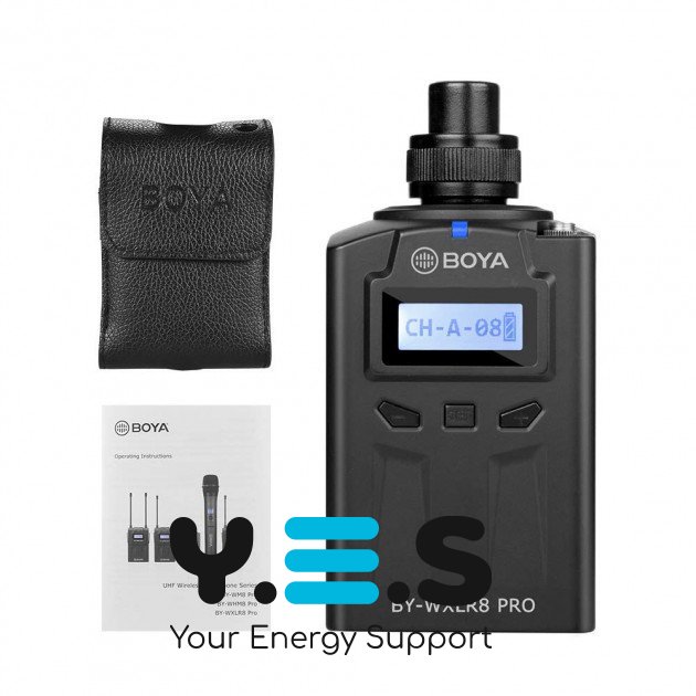 Бездротовий передавач XLR Boya BY-WXLR8 pro, для користувачів які провадять журналістську діяльність, записують інтерв'ю. Спеціально розроблений для систем Boya RX8 Pro та SP-RX8 Pro. Забезпечує підключення будь-якого портативного мікрофона з роз'ємом XLR, причому є блокування входів XLR і 3.5 мм TRS. Вибір мікрофонного/лінійного входу забезпечується простим перемиканням перемикача, поряд із корисною функцією відключення звуку.