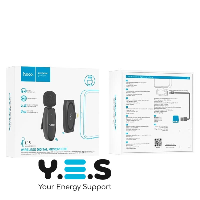 Бездротовий цифровий петличний мікрофон Hoco L15 iP Crystal