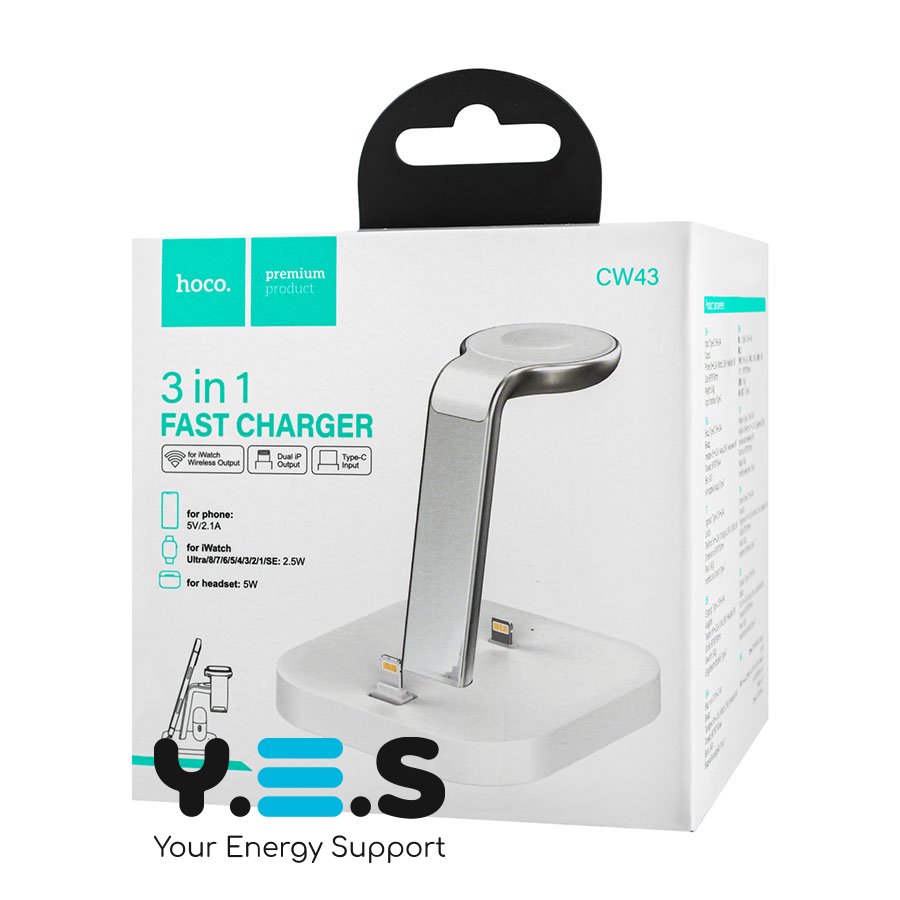 Бездротовий зарядний пристрій HOCO CW43 Graceful 3-в-1, білий