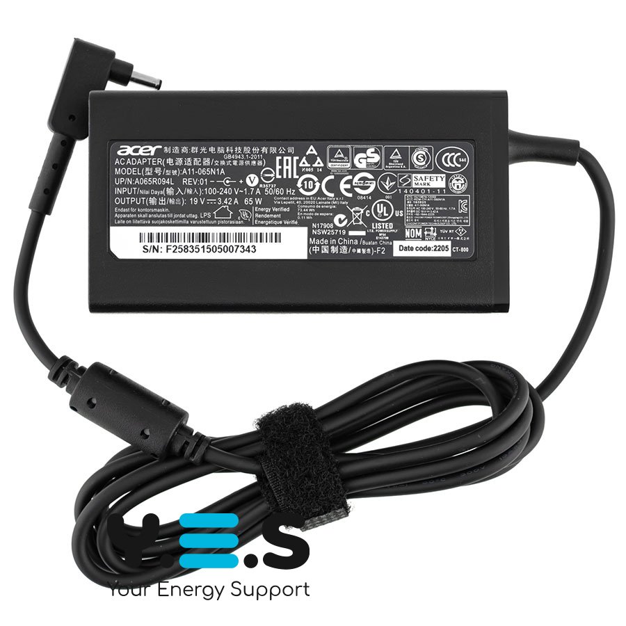 Блок живлення для ноутбука ACER — 19V 3.42A (65W), штекер 3.0×1.0 мм, чорний