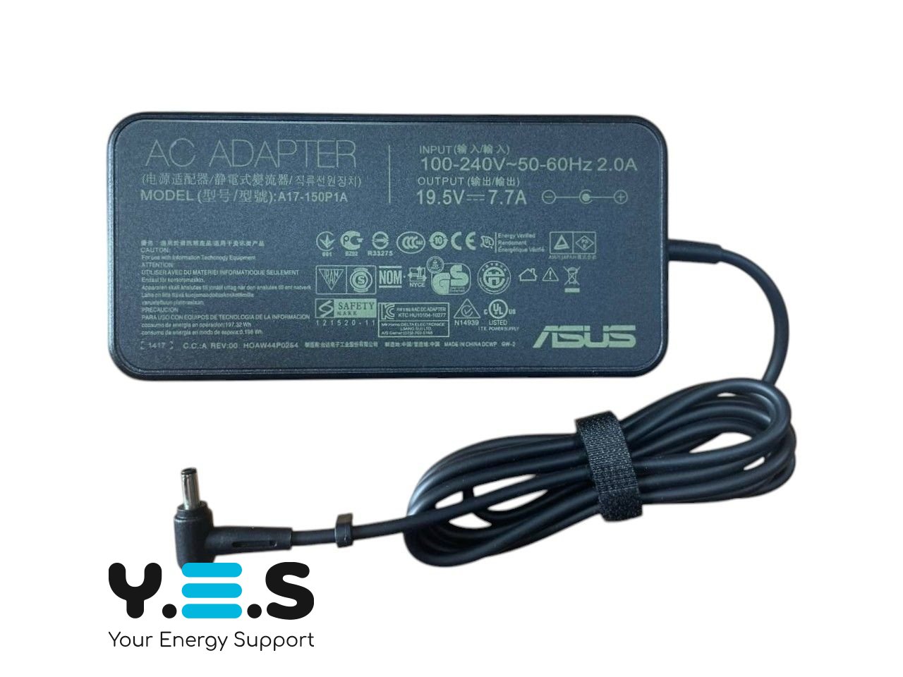 Блок живлення OEM для ноутбуків Asus потужністю 150W. Працює при напрузі 19.5V та силі струму 7.7A. Оснащений тонким роз'ємом 4.5×3.0мм зі штирьком усередині, сумісний з низкою продуктивних моделей Asus, зокрема серій TUF, ROG, VivoBook, ZenBook. Модель A17-150P1A1.