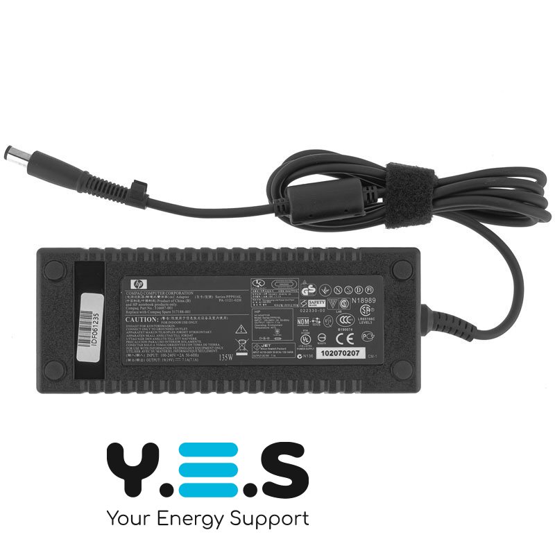 Якісний адаптер живлення для ноутбука HP з вихідними характеристиками 19V, 7.1A, 135W та роз'ємом 7.4x5.0-PIN. Колір: чорний. У комплект не входить кабель мережі живлення.