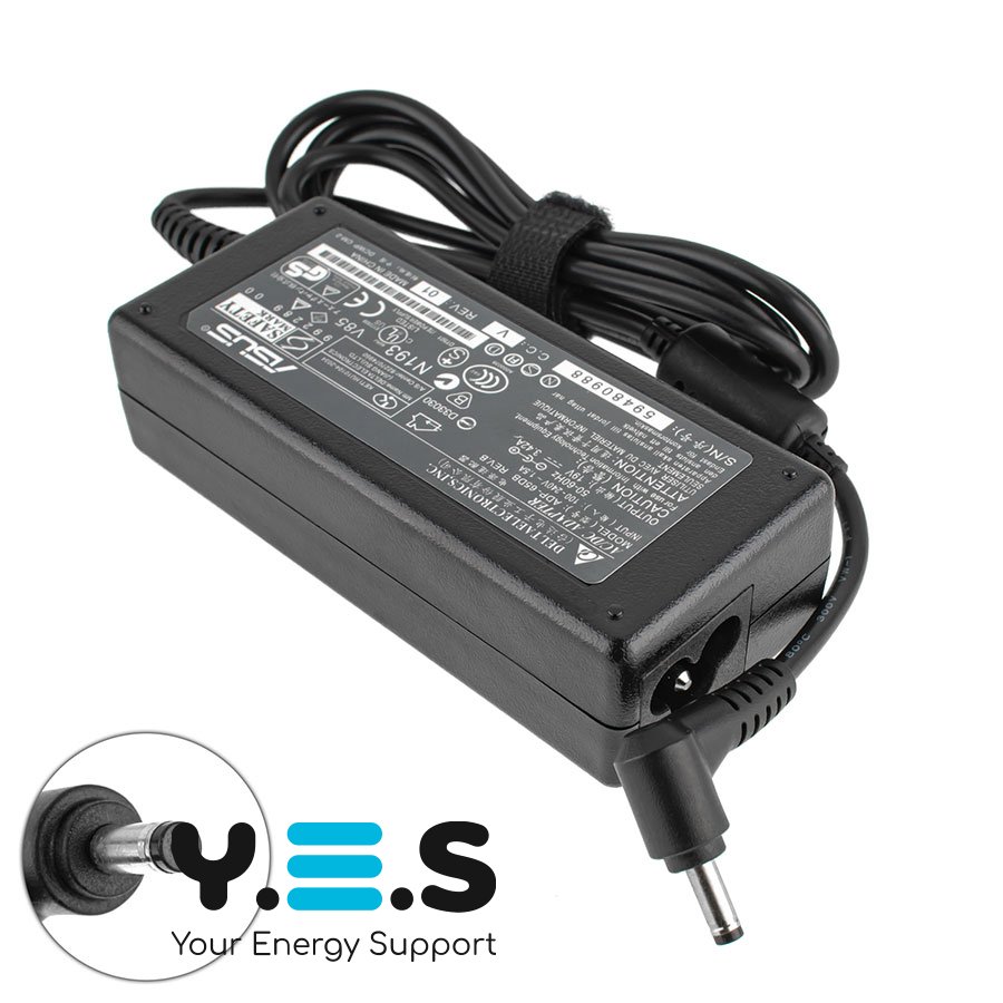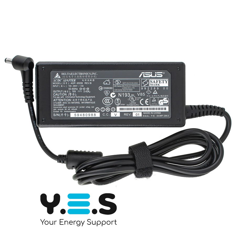 Блок живлення (зарядний адаптер) для ноутбука ASUS — 19V 3.42A (65W), штекер 4.0×1.35 мм, L‑подібний роз’єм, чорний, прямокутний (RECTANGULAR)
