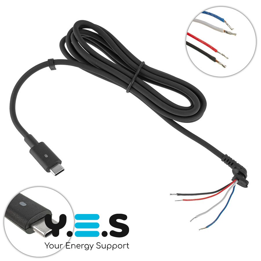 DC-кабель живлення для БЖ ноутбука USB‑C, L‑штекер, 4 дроти, 170 см (БЖ→ноутбук)