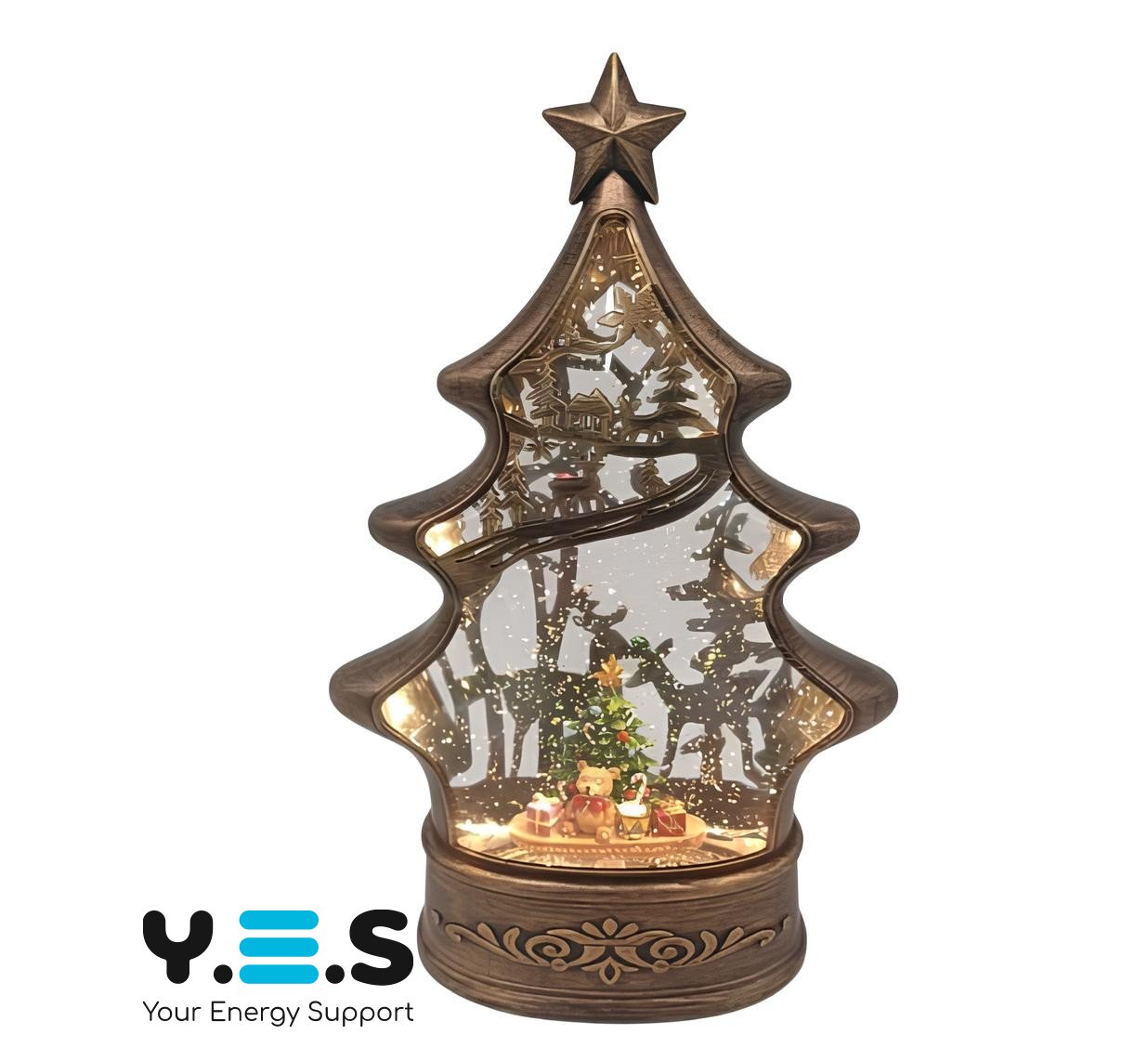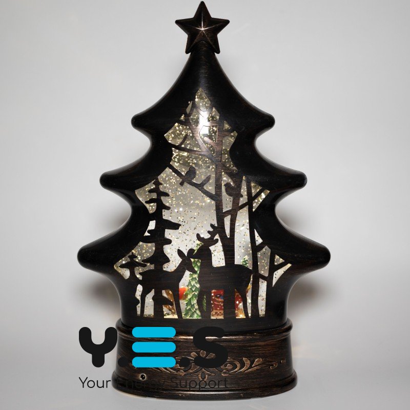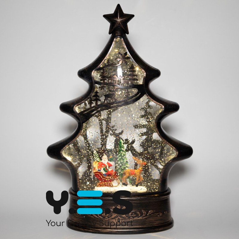 Декоративний світильник-ліхтар «Ялинка» з Дідом Морозом, USB-живлення
