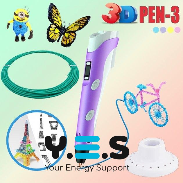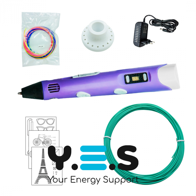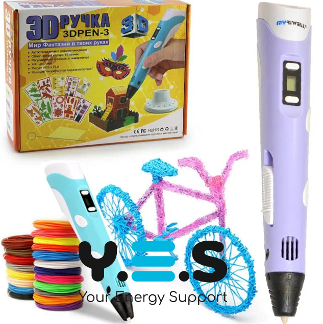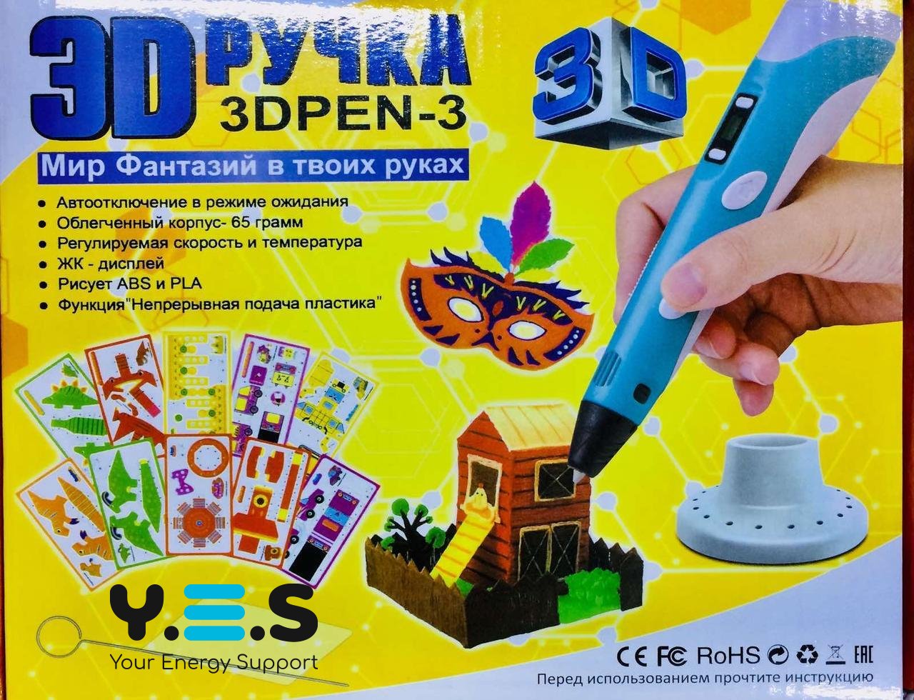 Дитяча 3D-ручка 3DPen-3 з дисплеєм: трафарети, 10 м пластику та підставка в комплекті