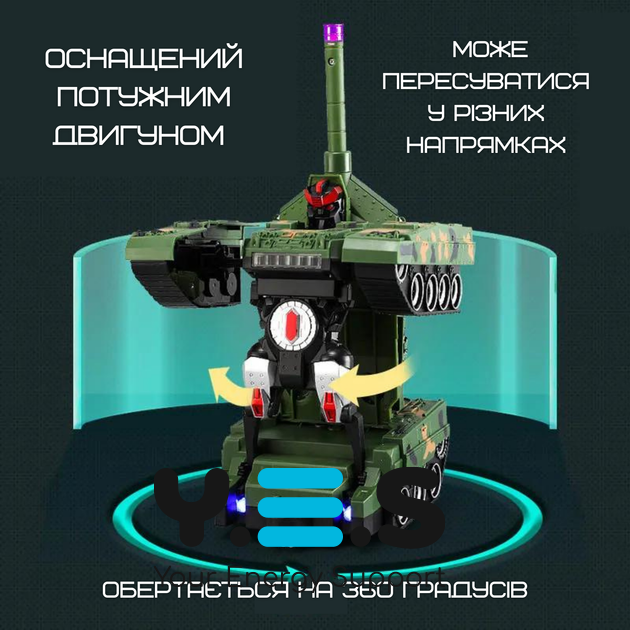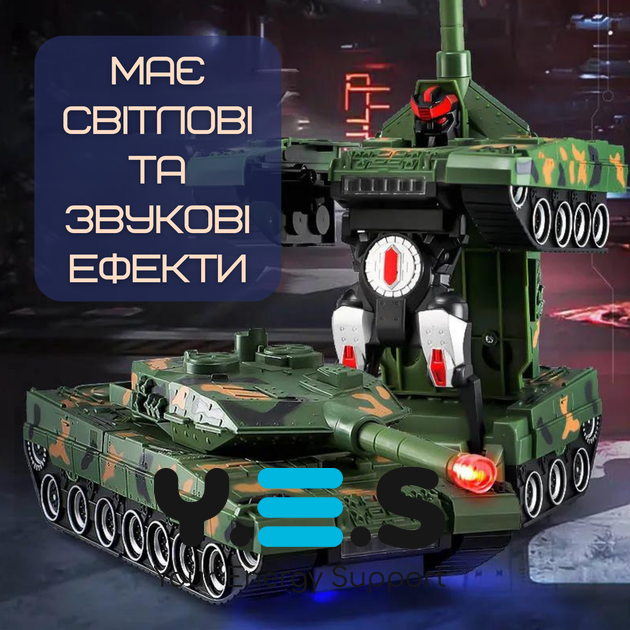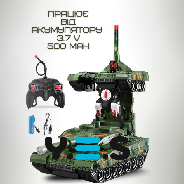 Дитяча радіокерована іграшка Armored Car: танк‑трансформер/робот 360°, світло, звук, акумулятор