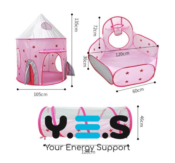Дитячий ігровий намет 3-в-1: замок-будиночок з тунелем і сухим басейном