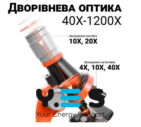 Дитячий мікроскоп з підсвічуванням і набором біозразків, іграшковий, 3 рівні збільшення