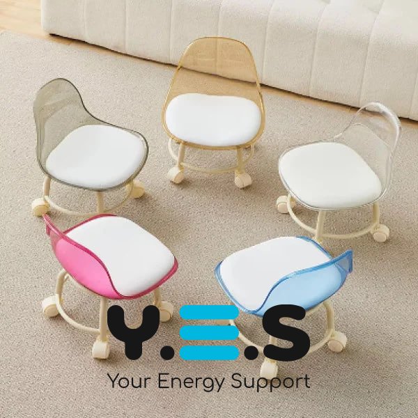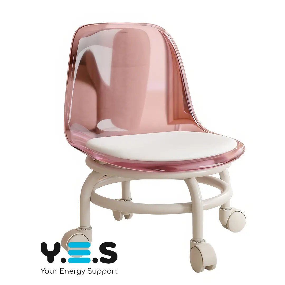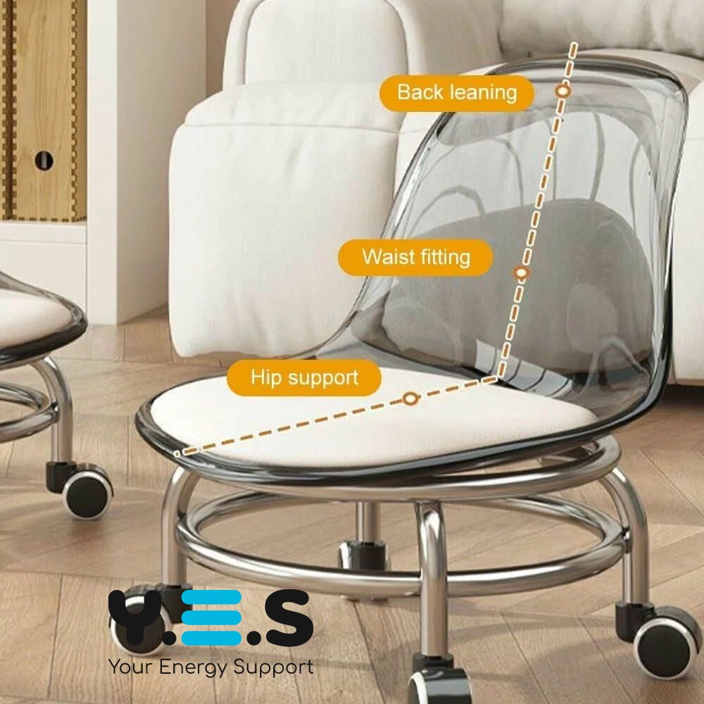 Домашнє крісло-стілець на коліщатках з м’яким сидінням і прозорою акриловою спинкою