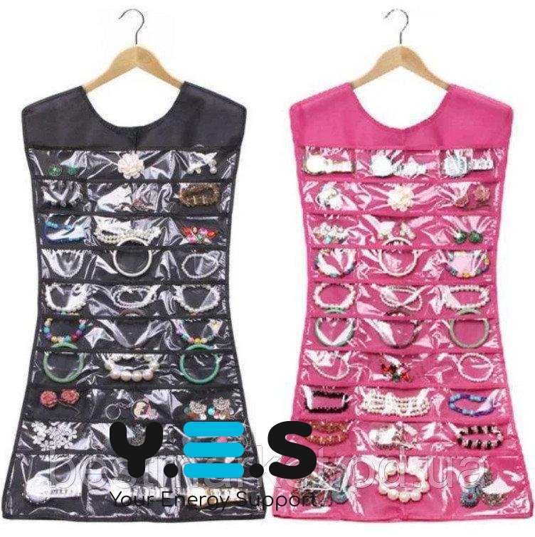 Багатофункціональний двосторонній органайзер – сукня для зберігання прикрас та аксесуарів (Hanging Jewelry Organizer) — зручне рішення для акуратного зберігання прикрас і дрібних аксесуарів. Завдяки підвісному формату органайзер допомагає економити місце та підтримувати порядок у шафі або гардеробній. Двостороння конструкція дає змогу розмістити більше речей і швидко знаходити потрібне щодня. Виріб підходить для регулярного використання, практичний та розрахований на тривалу службу.