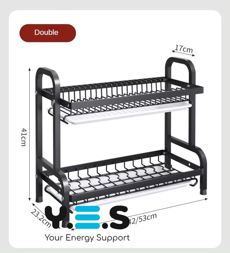 Двоярусна сушарка для посуду LY-620 — кухонна настільна металева стійка для сушіння та зберігання посуду. Практичне рішення для організації простору на кухні: допомагає акуратно розмістити посуд після миття та тримати його під рукою. Виготовлена з металу, підходить для щоденного використання, міцна та надійна.