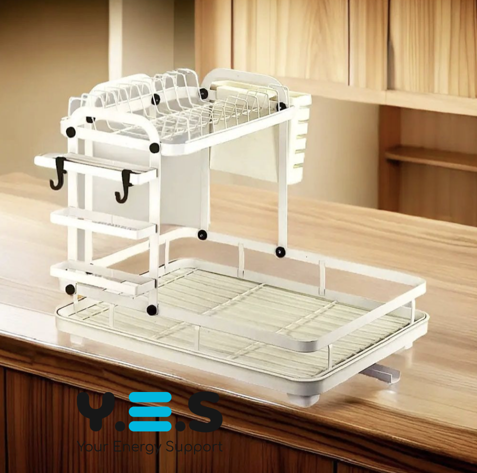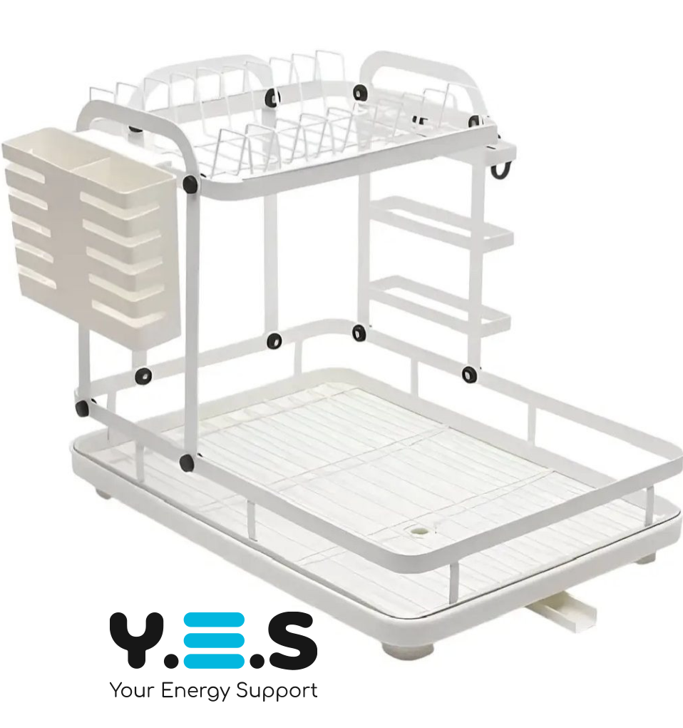 Двоярусна сушарка для посуду з відливом, 42×33×30 см, функціональна