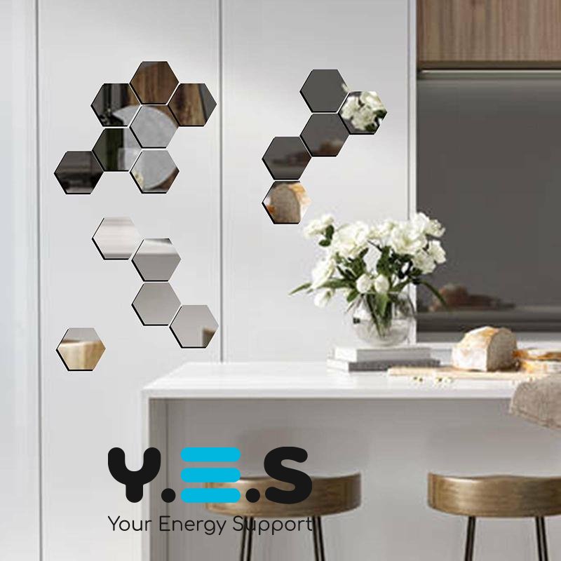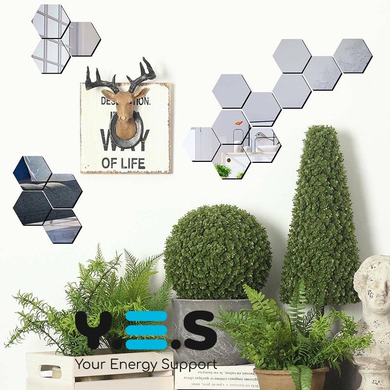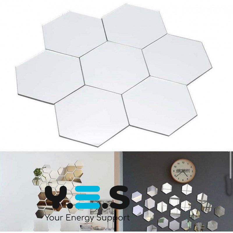 Дзеркальні акрилові наклейки «Соти» 12,5 см — настінний декор для інтер’єру, набір 12 шт.