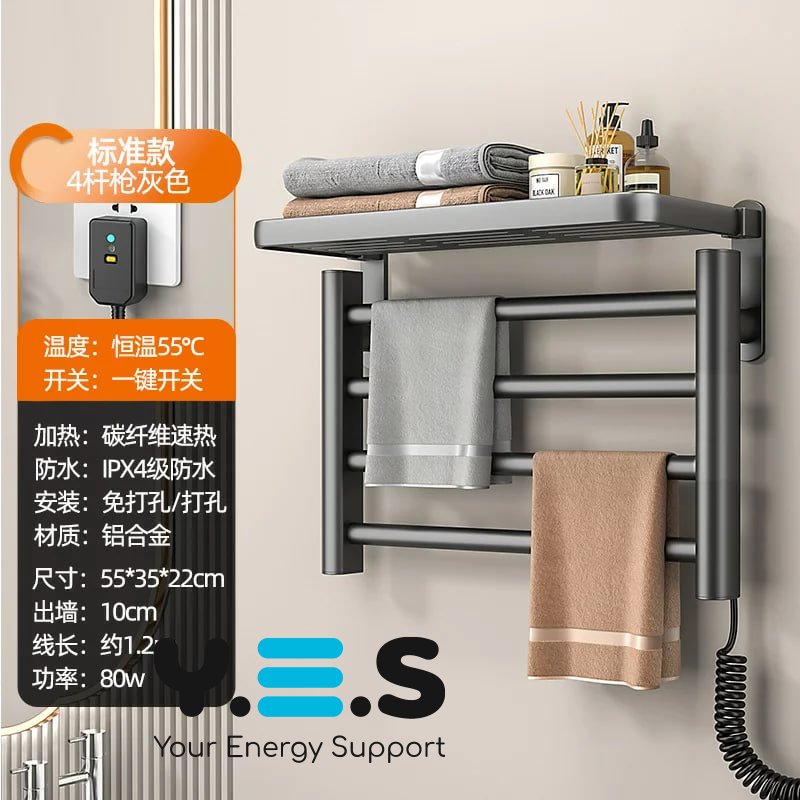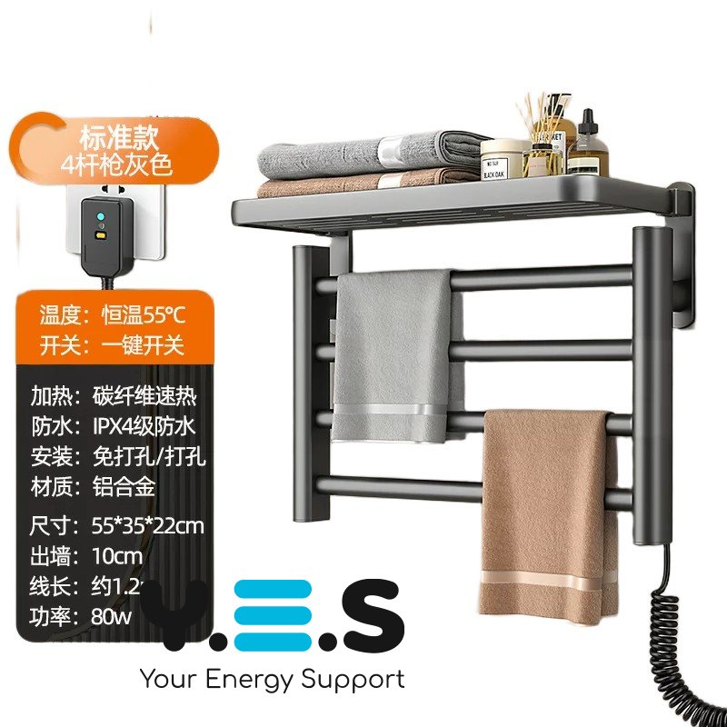 Рушникосушка з полицею настінна GN-9402-G — електрична рушникосушка для ванної кімнати, що поєднує зручне сушіння рушників і додаткове місце для зберігання завдяки полиці. Практичний настінний формат допомагає економити простір і підтримувати охайність у ванній.