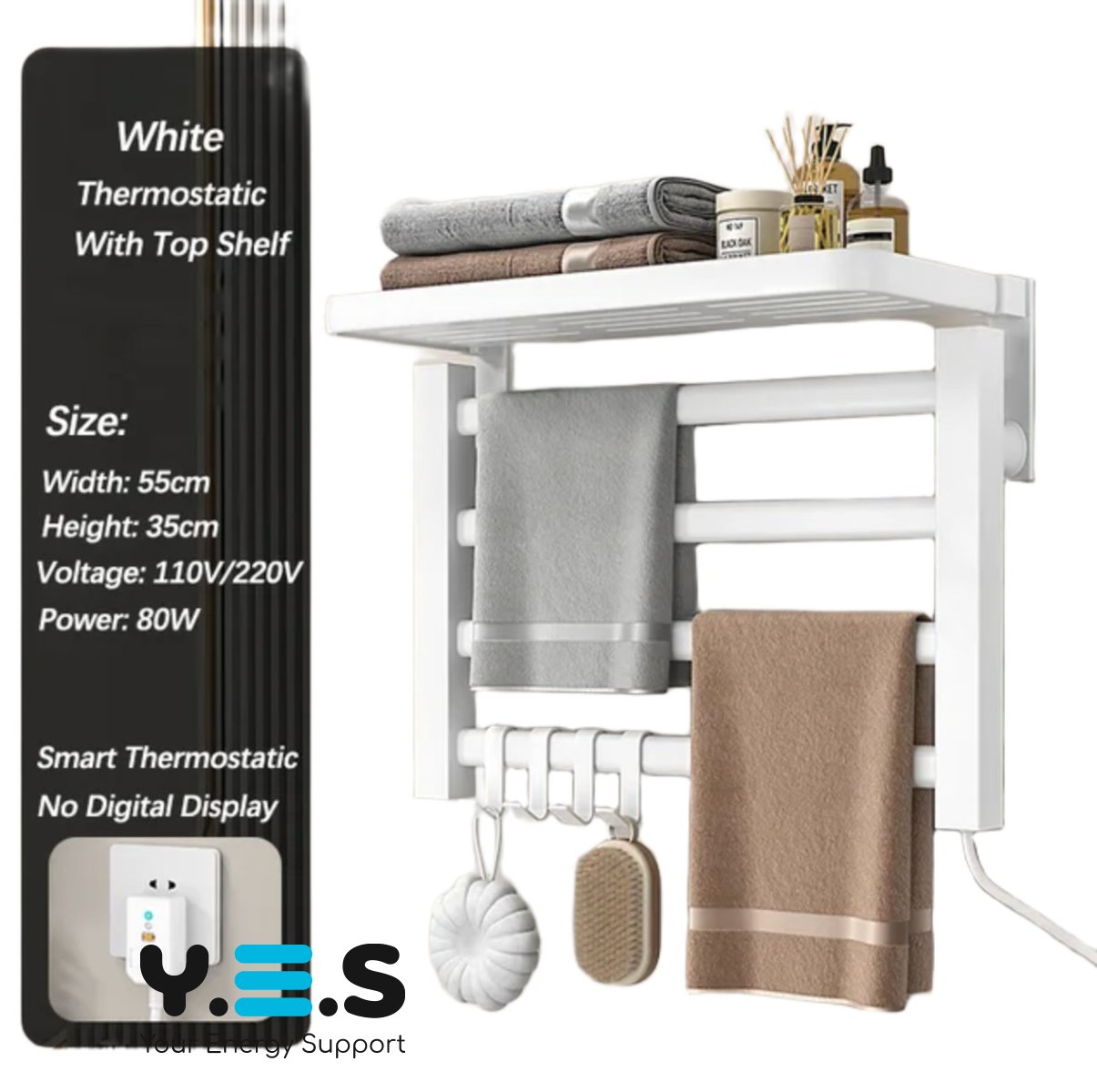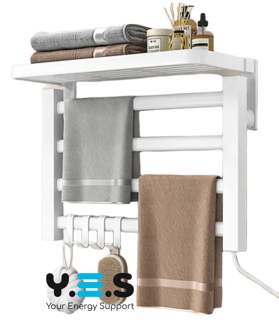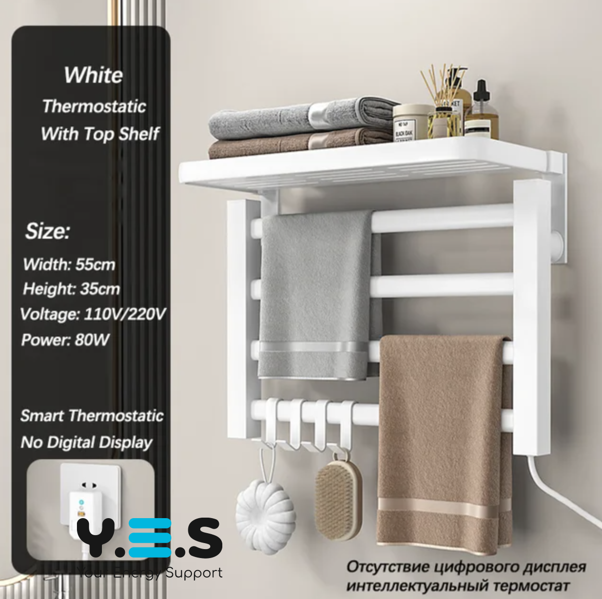 Електричний настінний полотенцесушник з полицею для ванної GN-7402-W