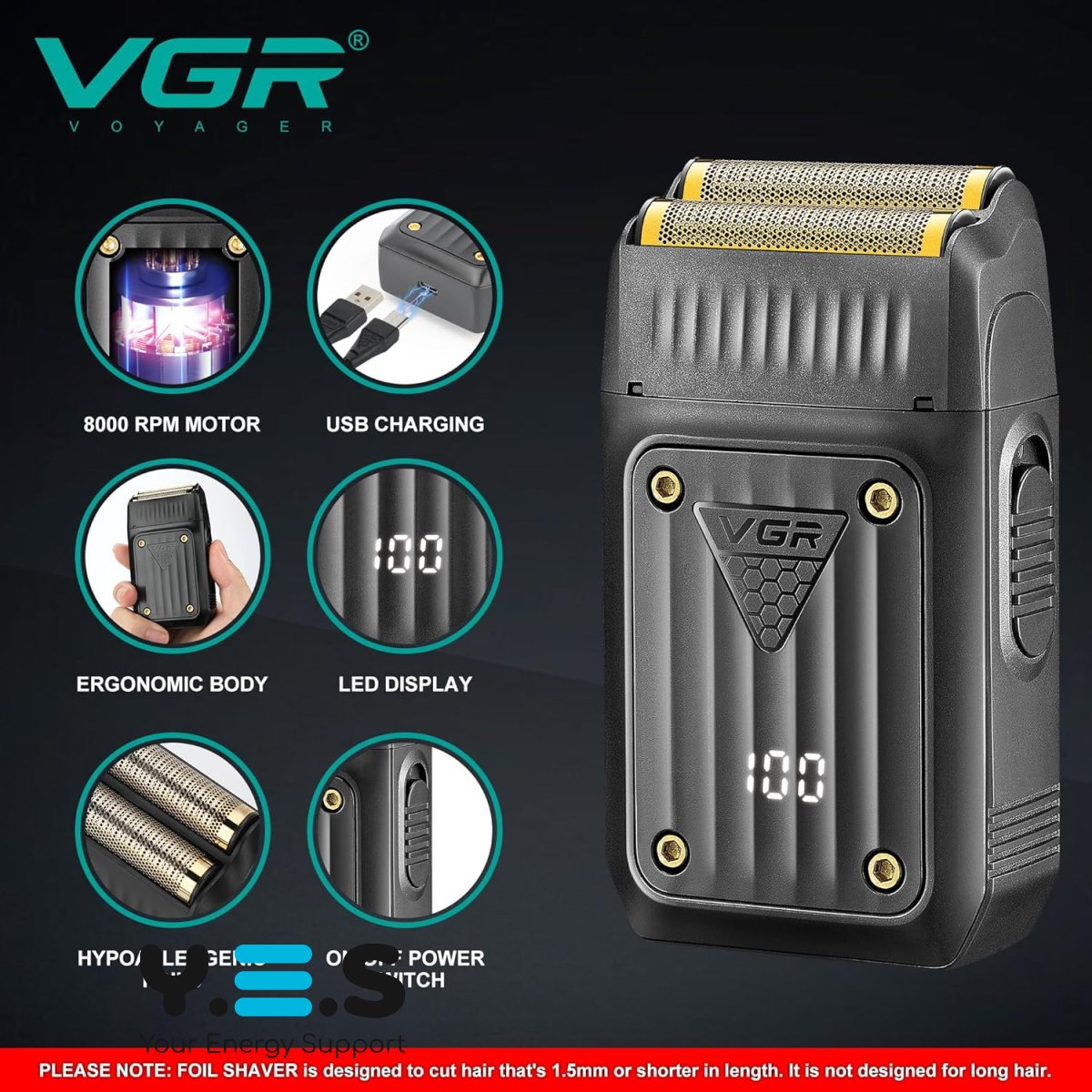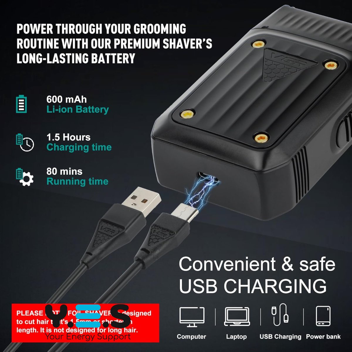 Електробритва VGR V-363 сіткова для подорожей, USB-зарядка, акумулятор