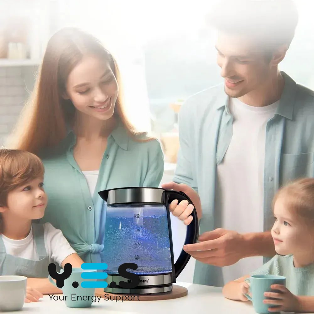 Електрочайник Hoffmans HM-2515 — практичний скляний чайник для швидкого кип’ятіння води та щоденного приготування чаю чи кави. Завдяки потужності 1800 Вт він швидко нагріває воду, а об’єм 2,2 л зручний для родини або офісу. Якісний і надійний варіант для щоденного використання.