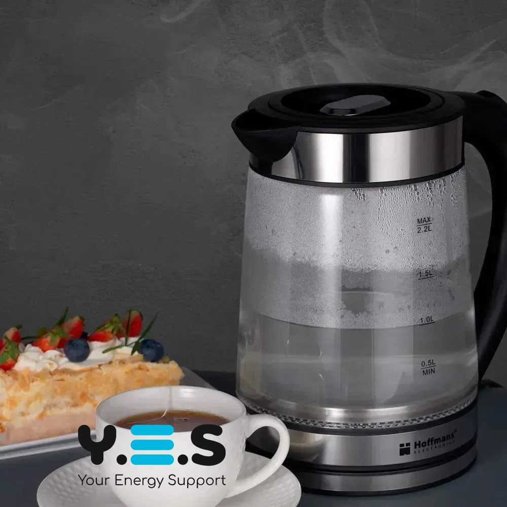 Електрочайник Hoffmans HM-2515 2,2 л скляний для чаю та кави, 1800 Вт