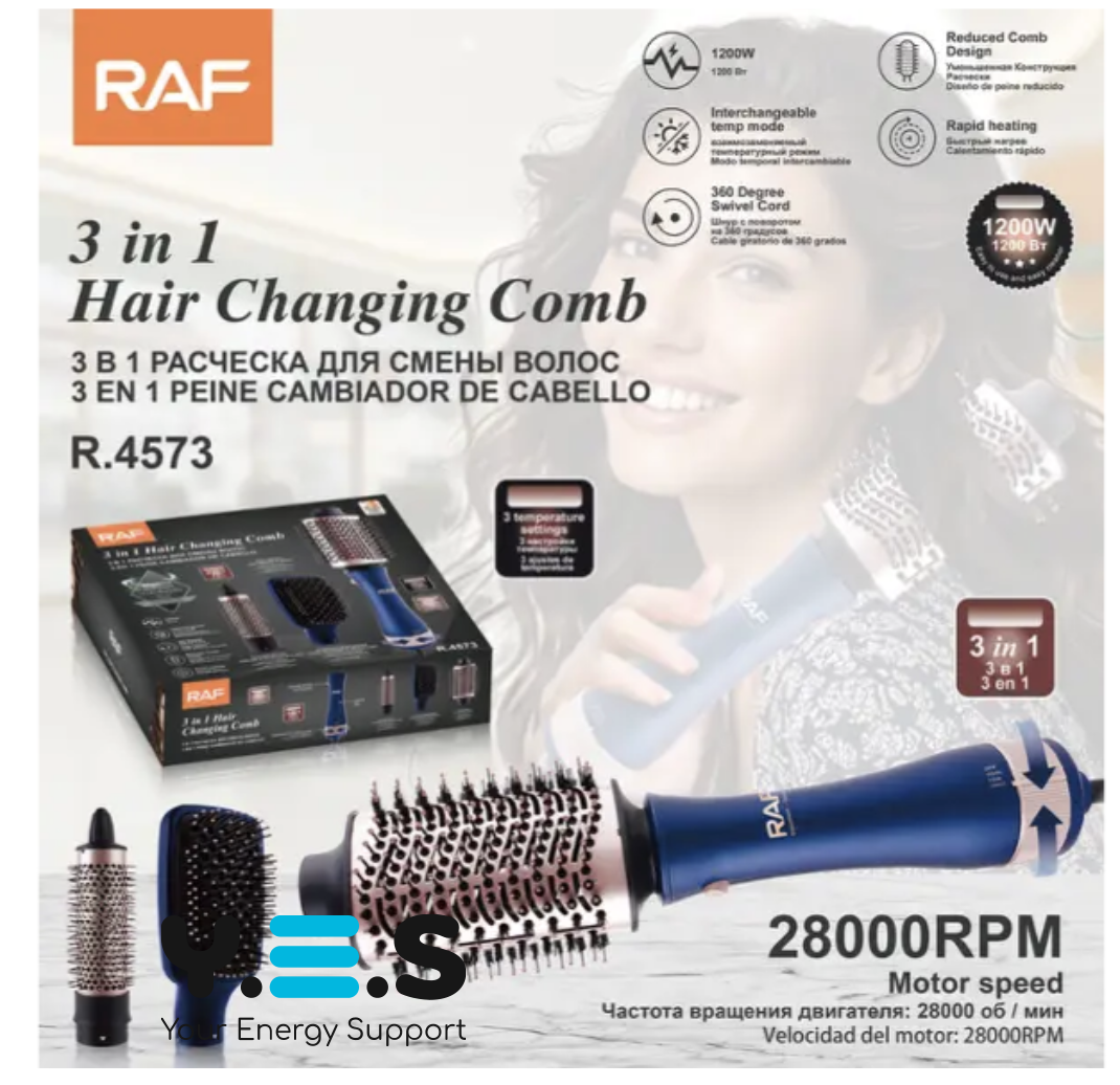 Фен-щітка RAF R.4573 3-в-1 для домашнього професійного укладання волосся