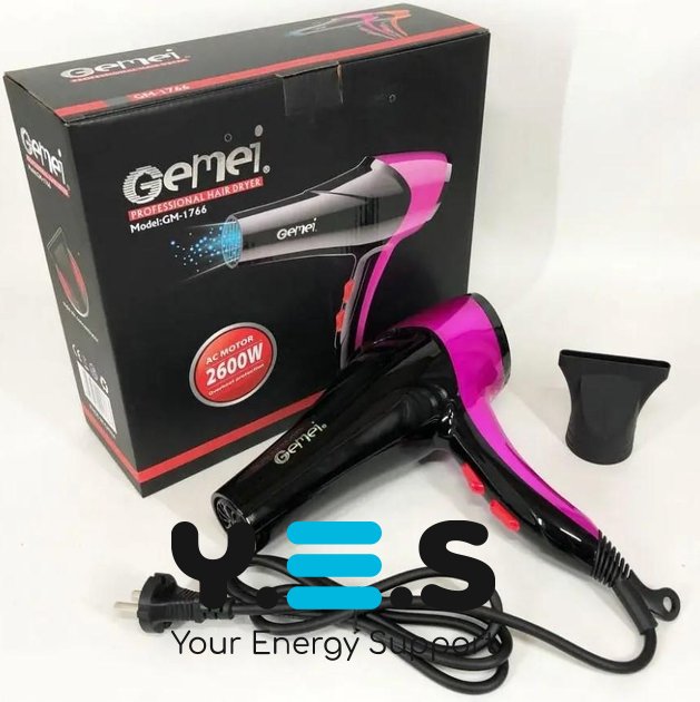 Фен GEMEI GM-1766 2.6 кВт — потужний професійний фен для волосся, розрахований на швидке сушіння та щоденне використання. Модель GM-1766 поєднує високу продуктивність і практичність, що робить її надійним вибором для дому та роботи.