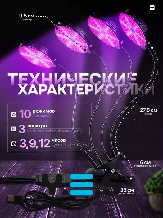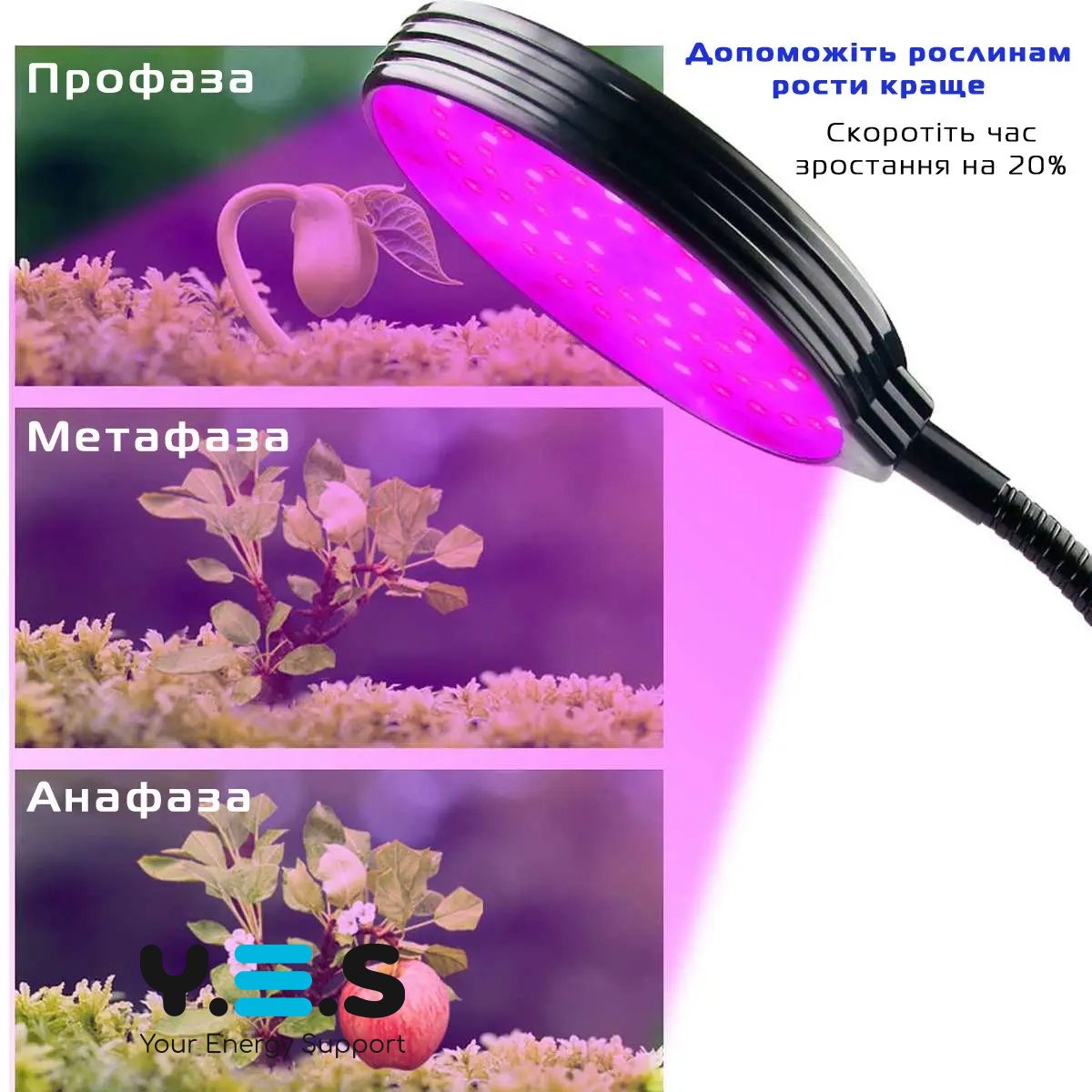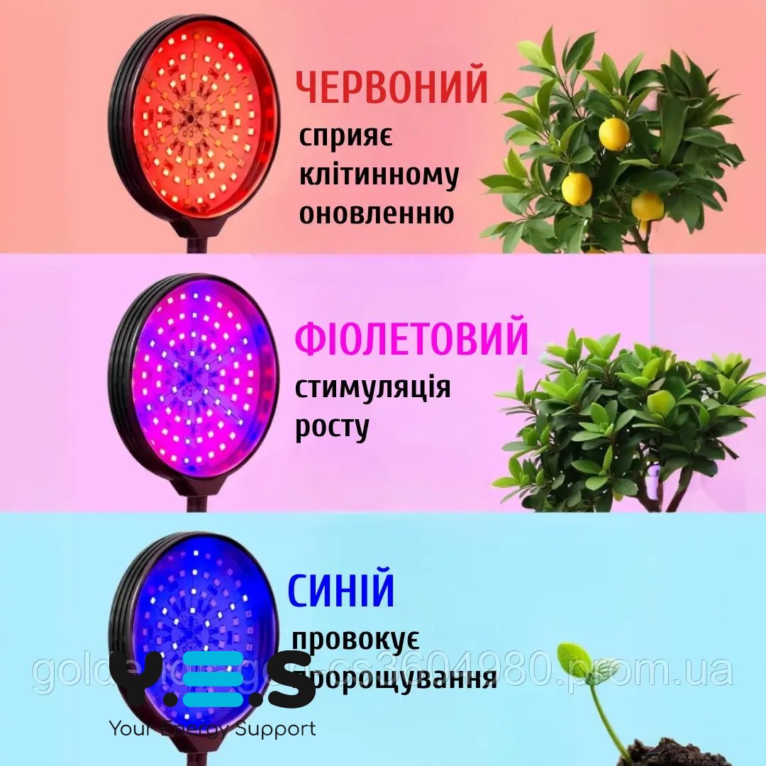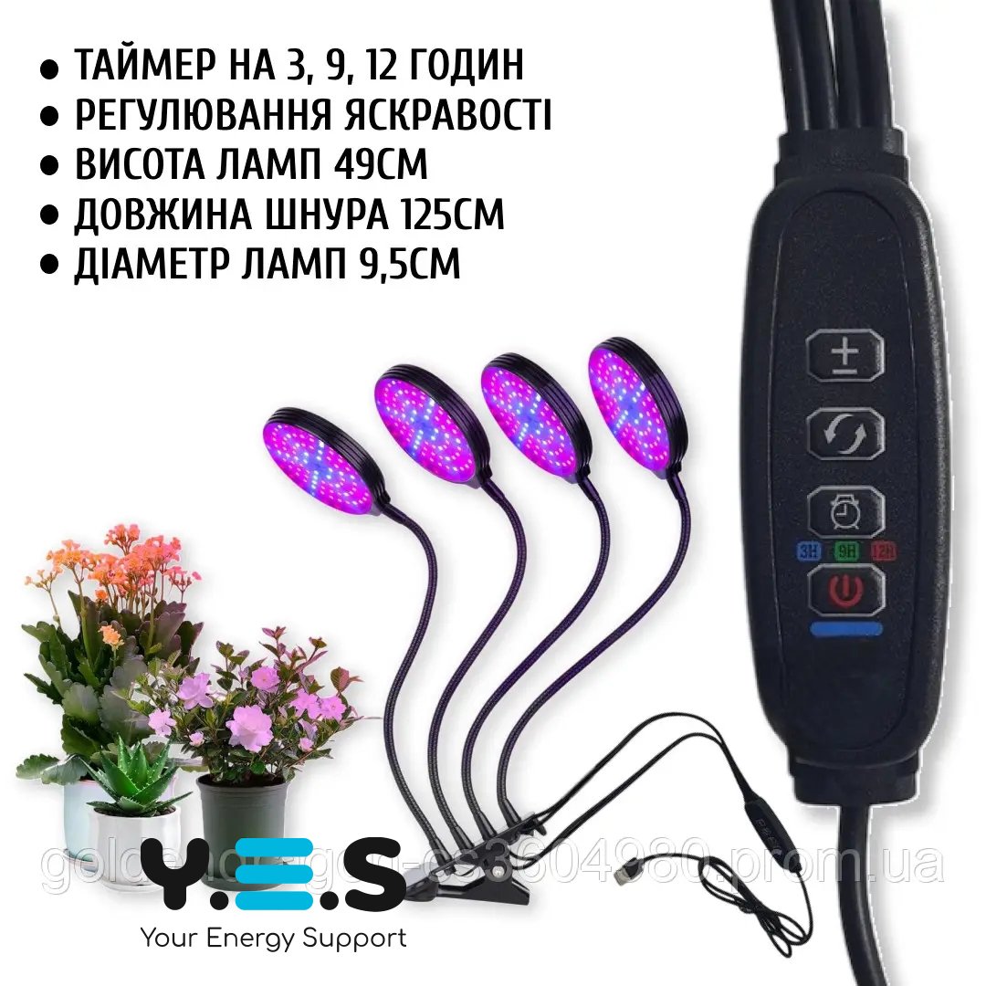 Фітолампа LED для рослин: кругла, 4 головки, таймер і регулювання яскравості