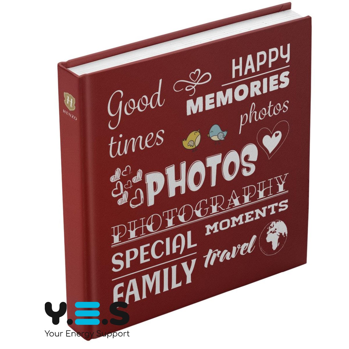 Фотоальбом HENZO 300*300 Fantasy Wording Red 10.730.03 Традиційний фотоальбом. На 100 сторінок білого кольору. Фотографії в цей альбом необхідно кріпити за допомогою фотоскотча. Можна розмістити фото в різному положенні і якщо розмір дозволяє – можна поєднувати фото кількох форматів на одній сторінці. Між паперовими сторінками фотоальбому є вставка з тонкого пергаменту – щоб фотографії не терлися одна об одну. Матеріал виготовлення обкладинки – пресований картон. Розмір обкладинки (Ш/В) – 300х300 мм.