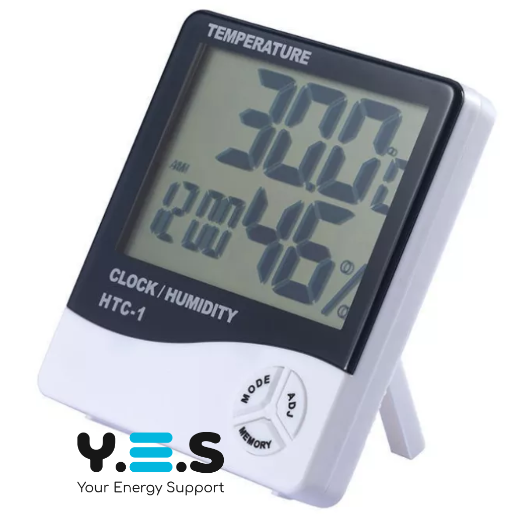 Годинник‑метеостанція HTC‑1 3‑в‑1: термометр, гігрометр і вологомір, великі цифри
