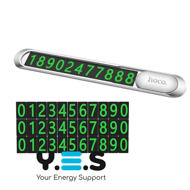 Паркувальна карта Hoco PH41 передбачено 11 віконець для цифр, щоб ви змогли записати номер у зручному форматі. У комплекті передбачено чотири набори цифр. В автовізитці фіксуються на магнітній основі.
