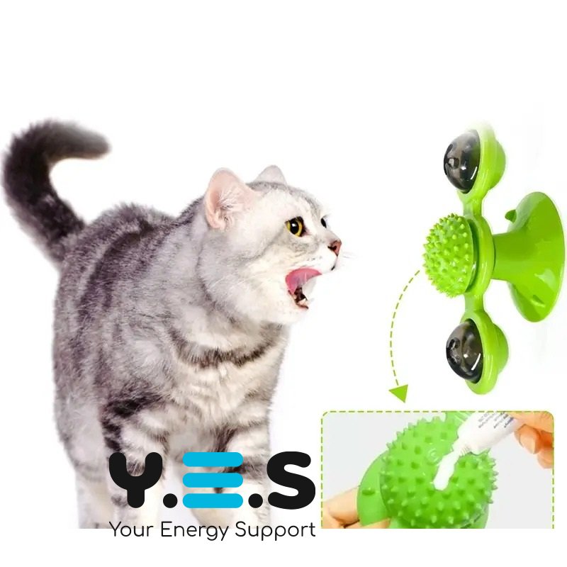 Інтелектуальна іграшка-спіннер для кота Rotate Windmill: млинок з щіткою для зубів