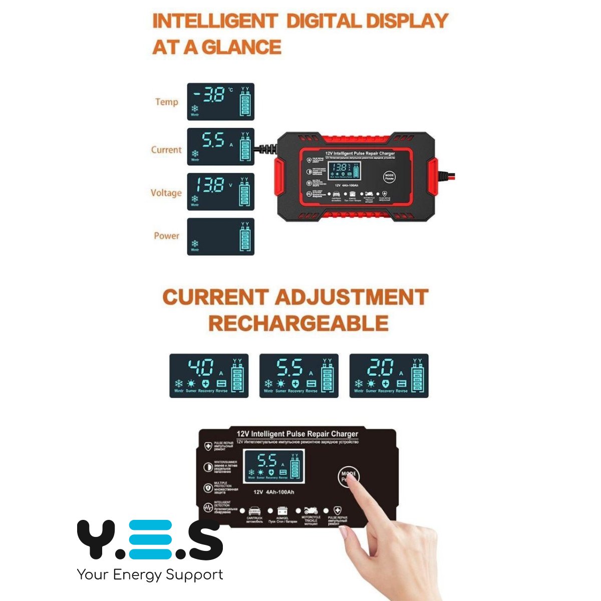 Зарядний пристрій створений для зручної щоденної експлуатації: підключіть акумулятор, контролюйте процес на дисплеї та користуйтеся автоматичним режимом заряджання.