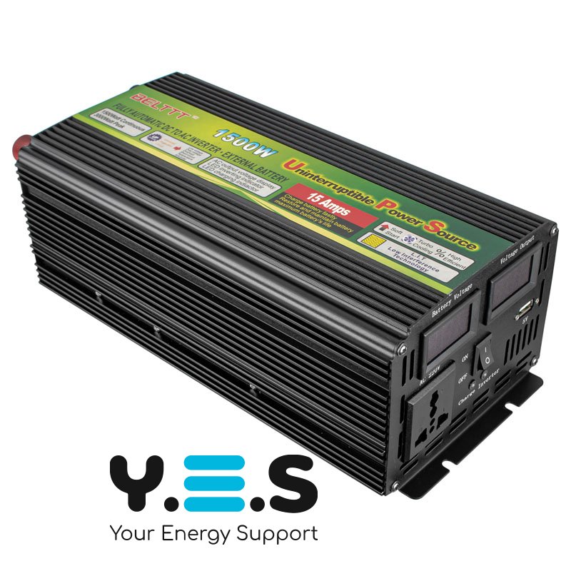 Інвертор Belttt 1500W, 12V, 15A (пікова потужність 3000W) модифікована синусоїда, з функцією зарядки