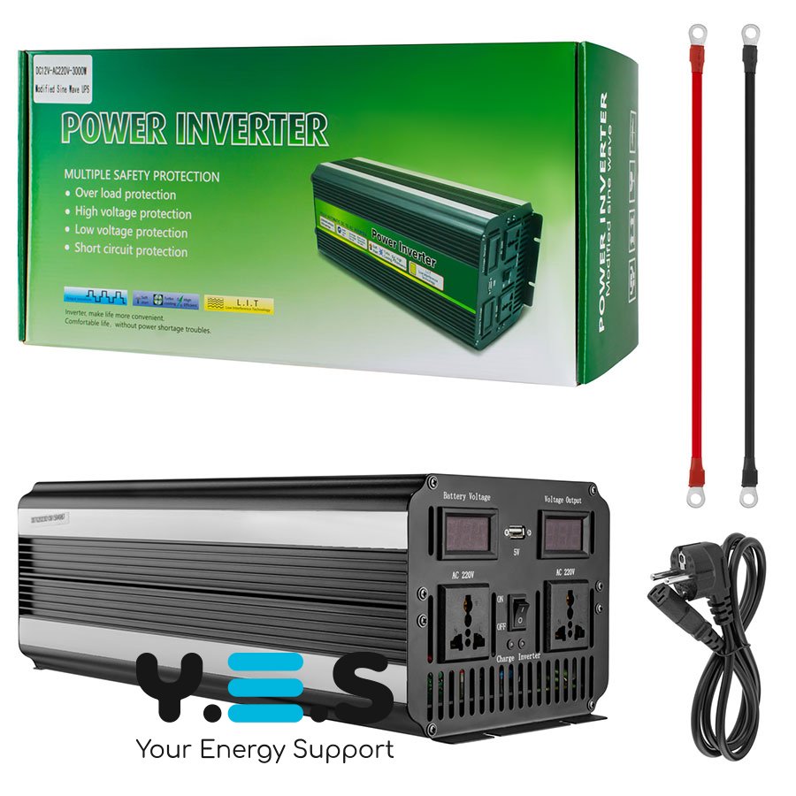 Інвертор Belttt 3000W, 12V, 25A (пікова потужність 6000W) модифікована синусоїда, з функцією зарядки