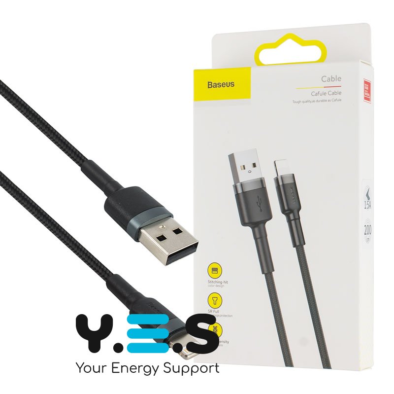 Кабель Baseus Cafule Cable USB to iP 1.5A 2m Gray+Black (CALKLF-CG1) — якісний і надійний кабель для щоденного заряджання та підключення пристроїв з роз’ємом iP. Підходить для регулярного використання вдома, в офісі або в дорозі завдяки зручній довжині та практичному виконанню.