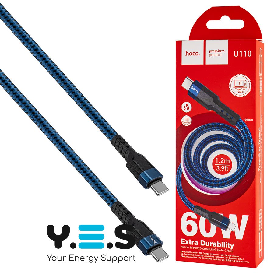 Кабель HOCO U110 Type-C to Type-C — якісний та надійний кабель для щоденного використання. Підходить для заряджання та підключення пристроїв із роз’ємом USB Type-C. Завдяки підтримці потужності до 60W забезпечує швидке та стабільне живлення сумісних гаджетів.