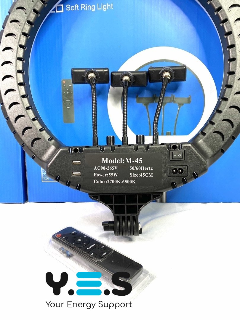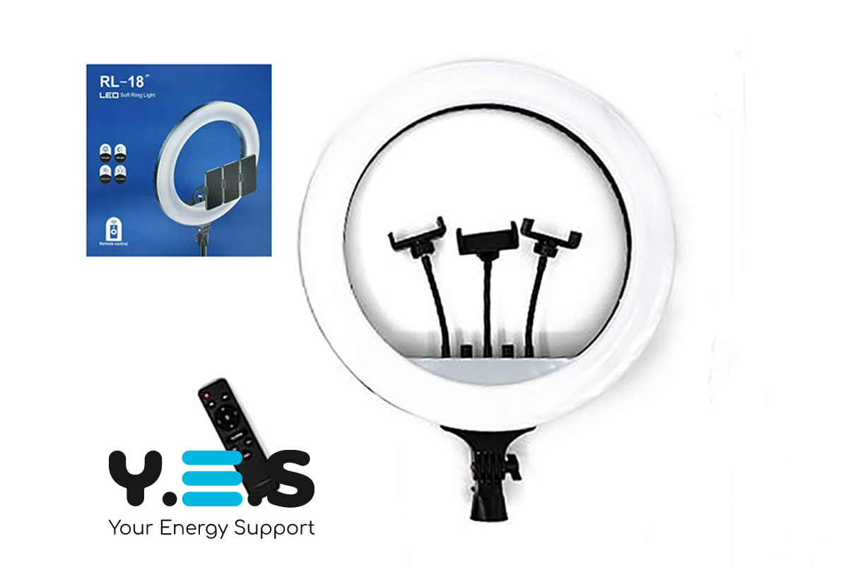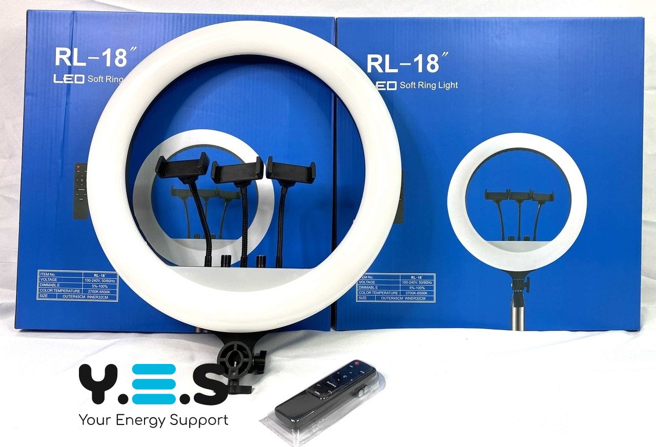Світлодіодна кільцева LED лампа RL-18 M45 — кільцеве селфі-світло діаметром 45 см для якісного освітлення під час фото, відеозйомки, стрімів, макіяжу та роботи з контентом. Модель комплектується пультом керування та сумкою для зручного зберігання і транспортування. Надійний і якісний варіант для щоденного використання.