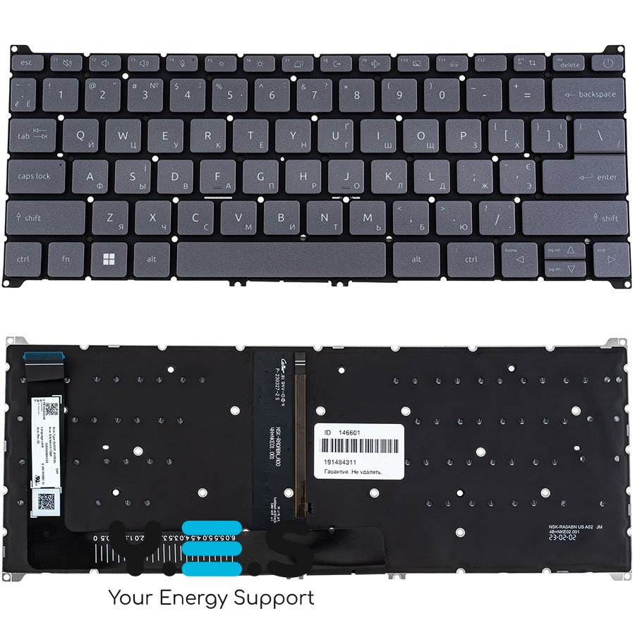 Клавіатура ACER Aspire A314-36, A314-42 — темно-сіра, українська розкладка, з підсвіткою, без рамки