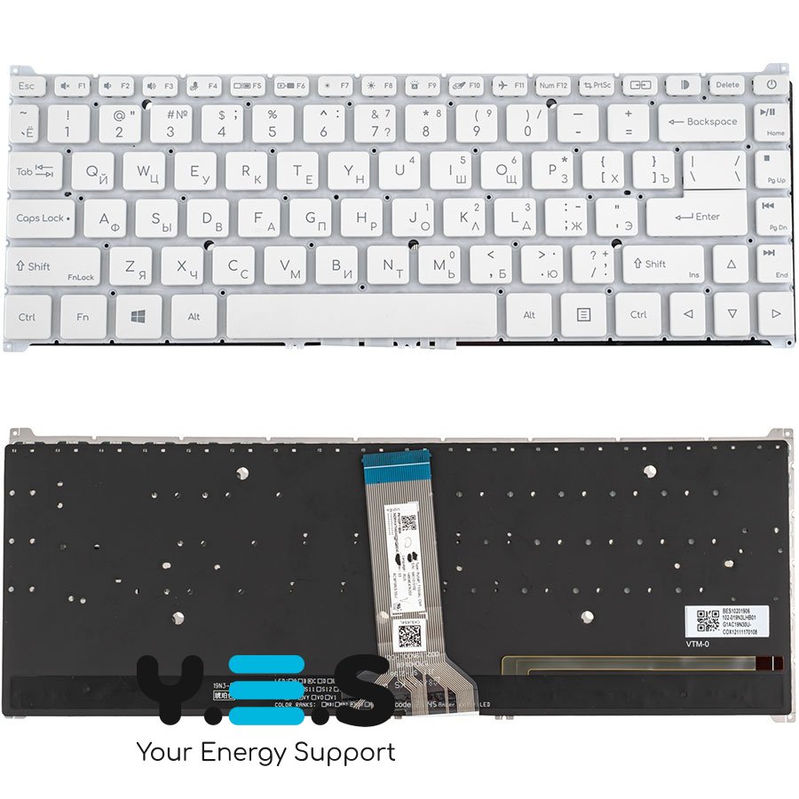 Клавіатура ACER ConceptD 5 CN516-72 — біла, російська розкладка, з підсвіткою, без рамки