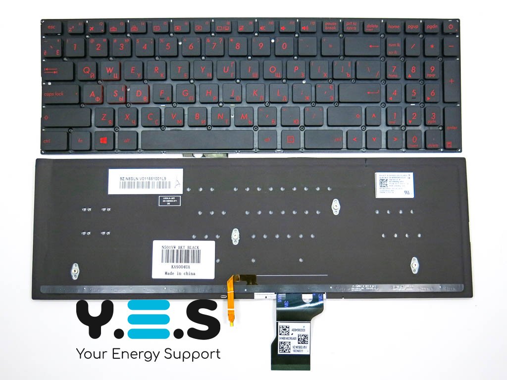 Клавіатура для ASUS N501 / N501J / N501JW / N501V / N501VW / N501JM / Q551 / Q551L / Q551LB / Q551LN / G501 / UX501JW — чорна RU, з підсвіткою, Original