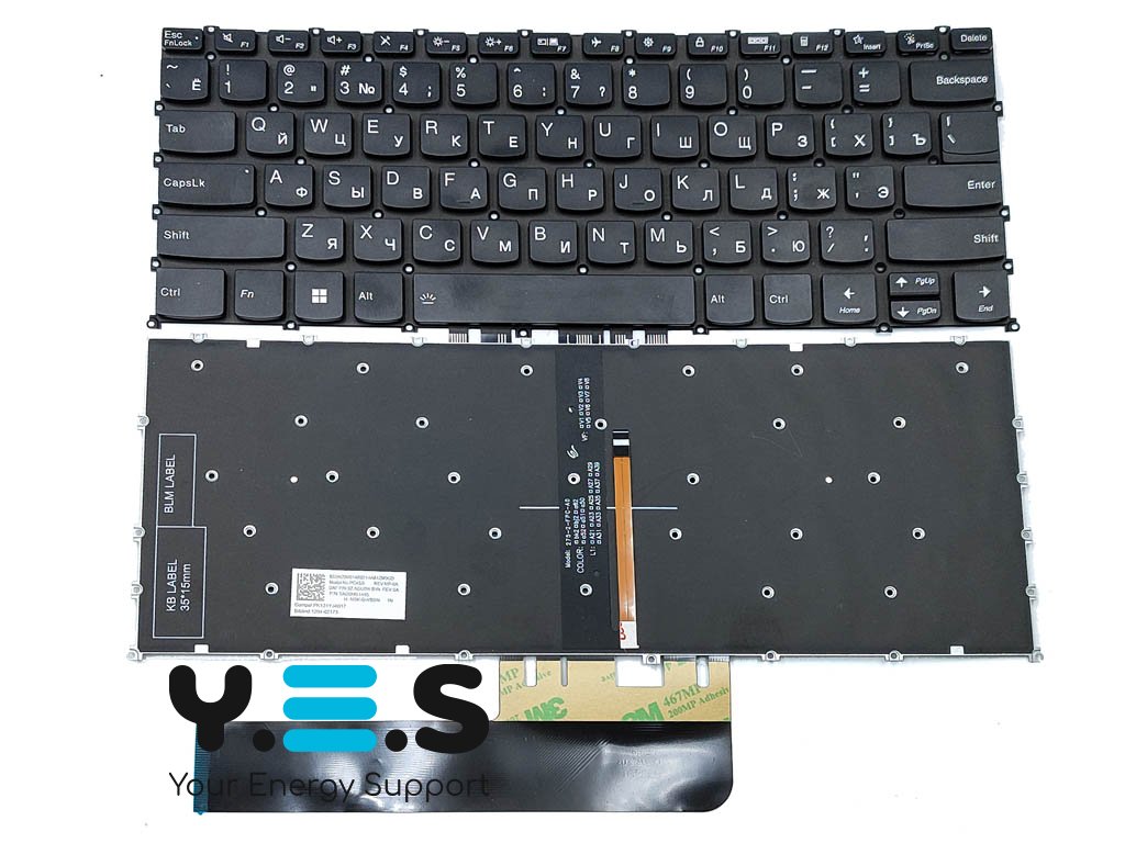Чорна клавіатура з підсвіткою та російською розкладкою. Забезпечує комфортне введення тексту, має сучасний дизайн і точне реагування клавіш. Ідеальна для заміни пошкодженої клавіатури на вашому ноутбуці Yoga Slim.