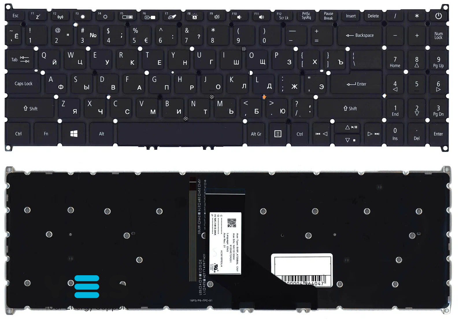 Клавіатура для ноутбука Acer Aspire A514-52, чорна, з підсвіткою (Light), RU-розкладка