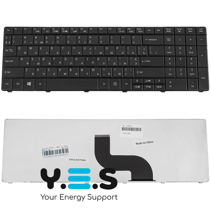 Клавіатура для ноутбука Acer Aspire E1-521/E1-531/E1-571 та TravelMate 5335/5542/5735/5740/5744/7740/8571/8572 — українська розкладка, чорна