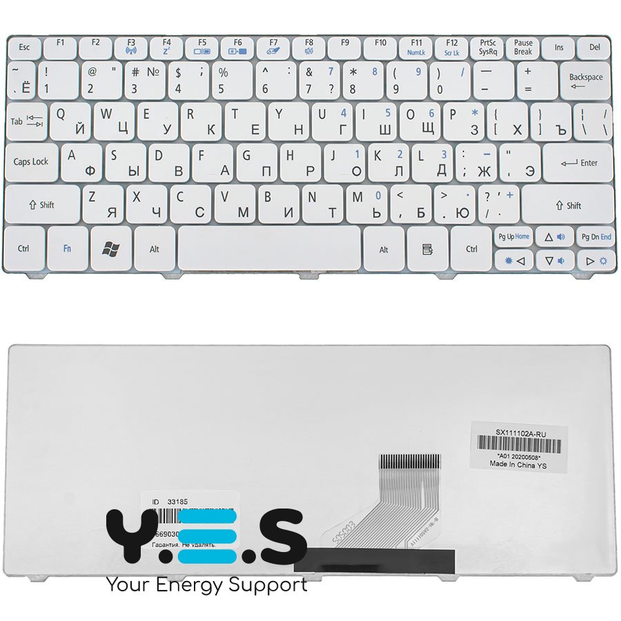 Клавіатура для ноутбука Acer One 521/522/532/533, D255/D257/D260/D270, Happy, EM 350/355 — біла, RU-розкладка