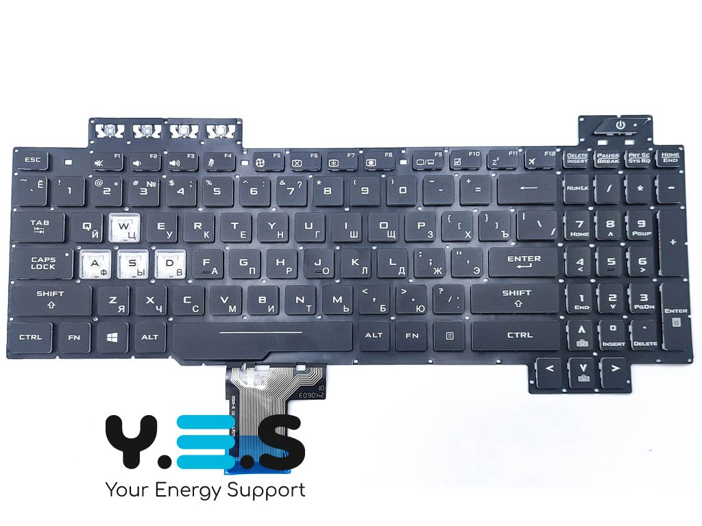 Клавіатура для ноутбука ASUS FX505, FX505G, FX505D, FX505GD, FX505GE, FX505GM, FX505DY, FX505DV — чорна RU, без рамки, з RGB підсвіткою (Original)