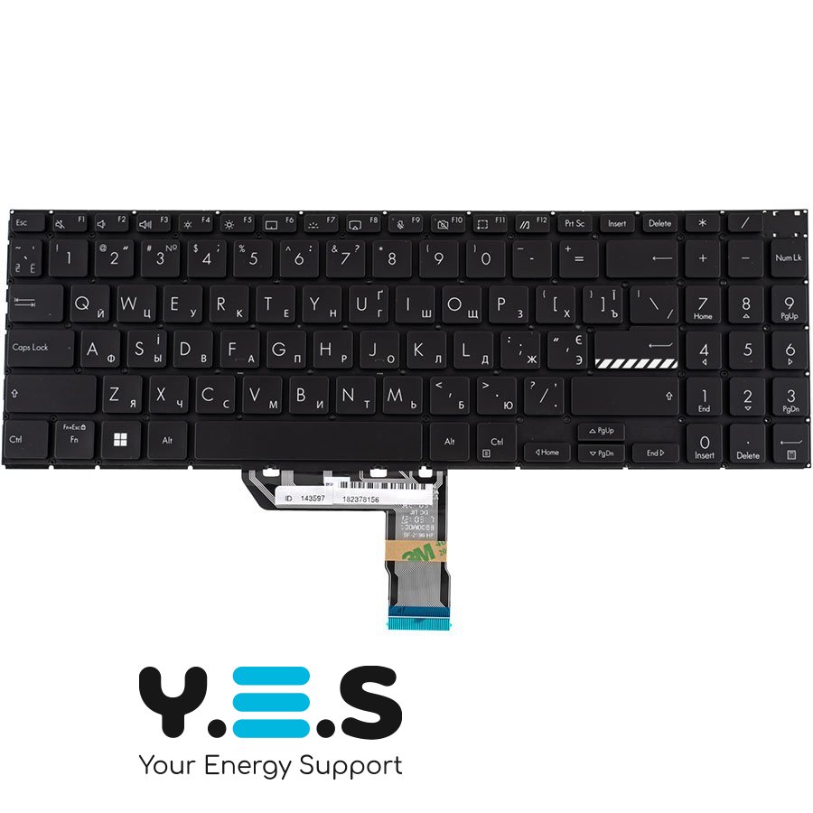 Клавіатура для ноутбука ASUS M3500 — чорна, українська розкладка, без фрейма, з підсвіткою клавіш