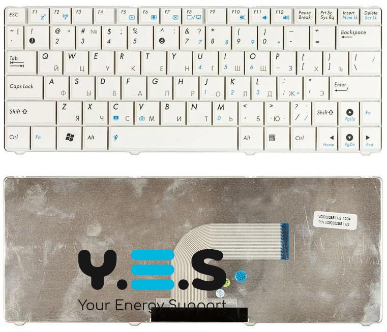 Біла клавіатура-аналог для ноутбуків Asus N10 серій (N10, N10E, N10J‑series), з російською QWERTY‑розкладкою. Моделі включають V090262BS1, V090262BS2, 0KNA‑1J2UI01. Ідеально підходить для заміни штатної клавіатурної панелі. Гарантія — 3 місяці.