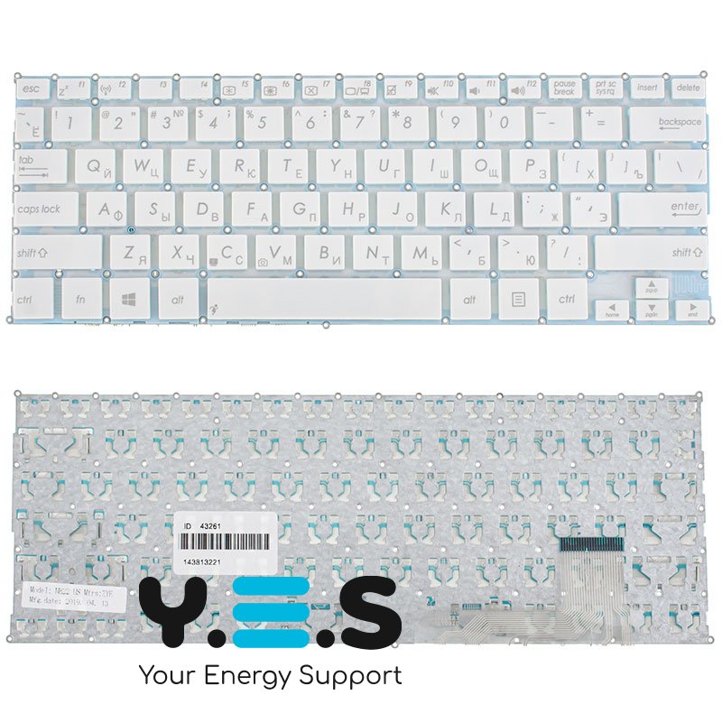 Клавіатура для ноутбука ASUS серій S200, X201, X202 — біла, RU-розкладка, без рамки